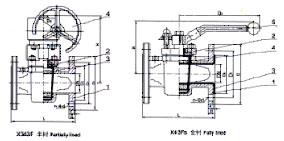 lining: Fluoroplastic stopper: carbon steel, stainless steel handle: carbon steel worm gear assembly: