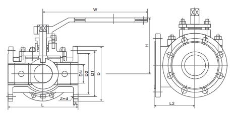 Q644F Pneumatic Three-way Ball Valve main dimensions