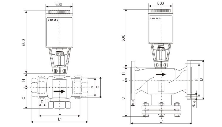 型號 | 規(guī)格 | L | H | H1 | D | C | K | n-d | 壓差KPa | 重量(KG) | 行程 |