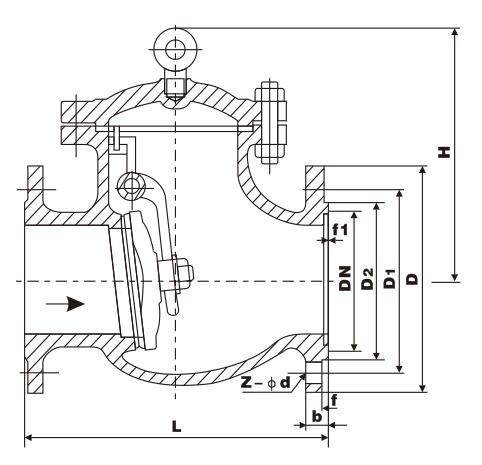 H44W/H/Y美標旋啟式止回閥主要連接與外形尺寸及重量
